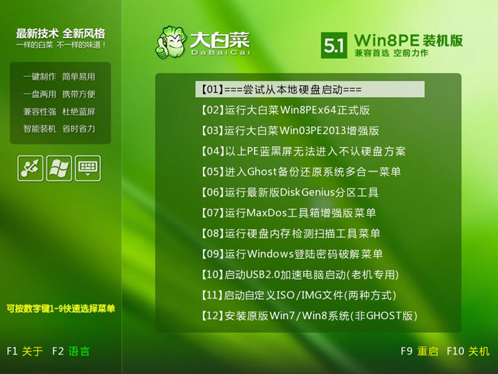 4、多系統引導混亂,大白菜本地模式一鍵搞定。