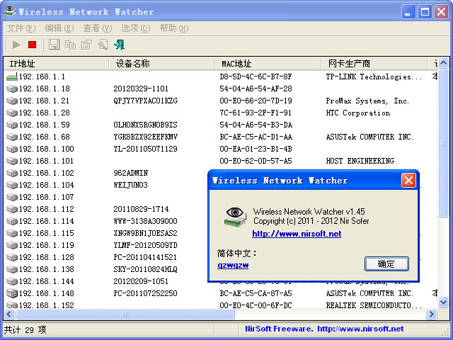 2012-06-16無線網絡用戶查看軟件(Wireless Network Watcher)V1.45 漢化綠色版