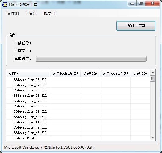 DirectX修復工具(DirectX Repair)為了應對一般電腦用戶的使用,采用了傻瓜式一鍵設計,只要點擊主界面上的“檢測并修復”按鈕,程序就會自動完成校驗、檢測、修復以及注冊的全部功能,無需用戶的介入,大大降低了使用難度。