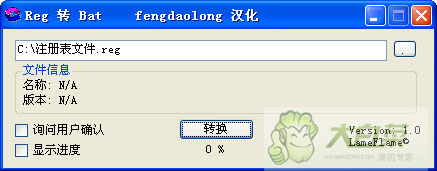 注冊表文件轉換成BAT(Reg To Bat)1.0 中文版|