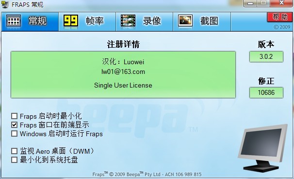 fraps3.0.2(簡體中文漢化特別版)|